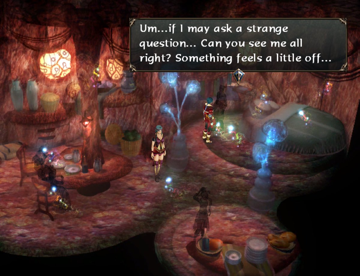 Poke around, turns out most of the ghosts aren’t even aware of what went wrong - what WENT wrong then? We sure aren’t learning that today ‘cause Sagi gets a headache again and wakes up back in Alfard. THANKS, GAME.