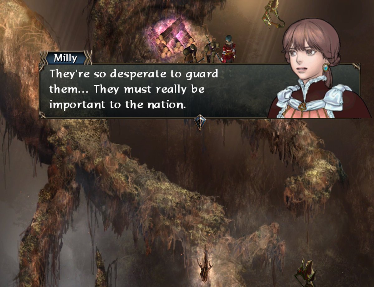 Alright. We’re in Opu, Lolo can help if we chop a branch off the magic sacred tree, Milly is super jealous because it’s getting time to develop the Contracted Heteronormative Romance Between Protagonists, yay. Onwards?